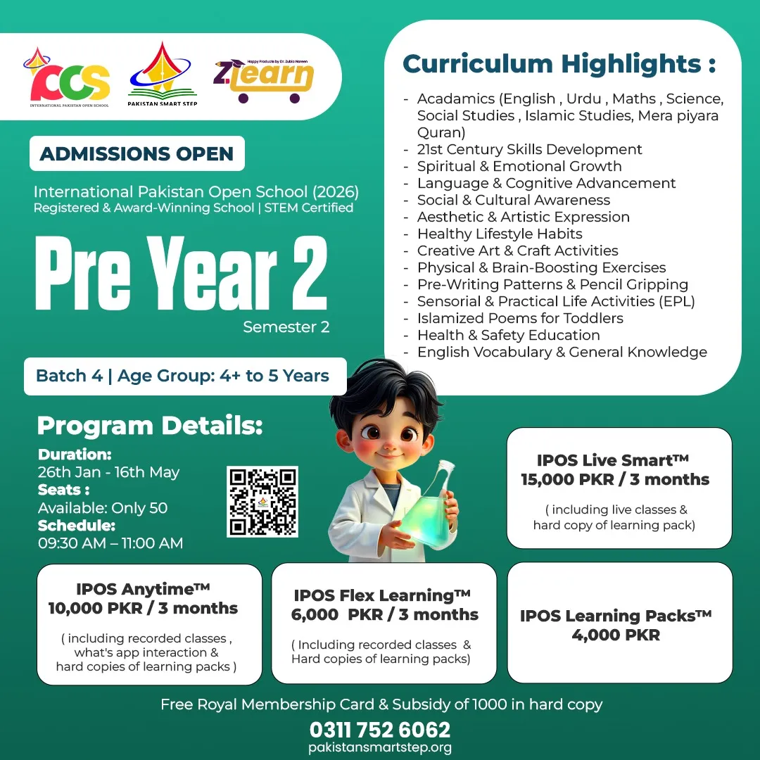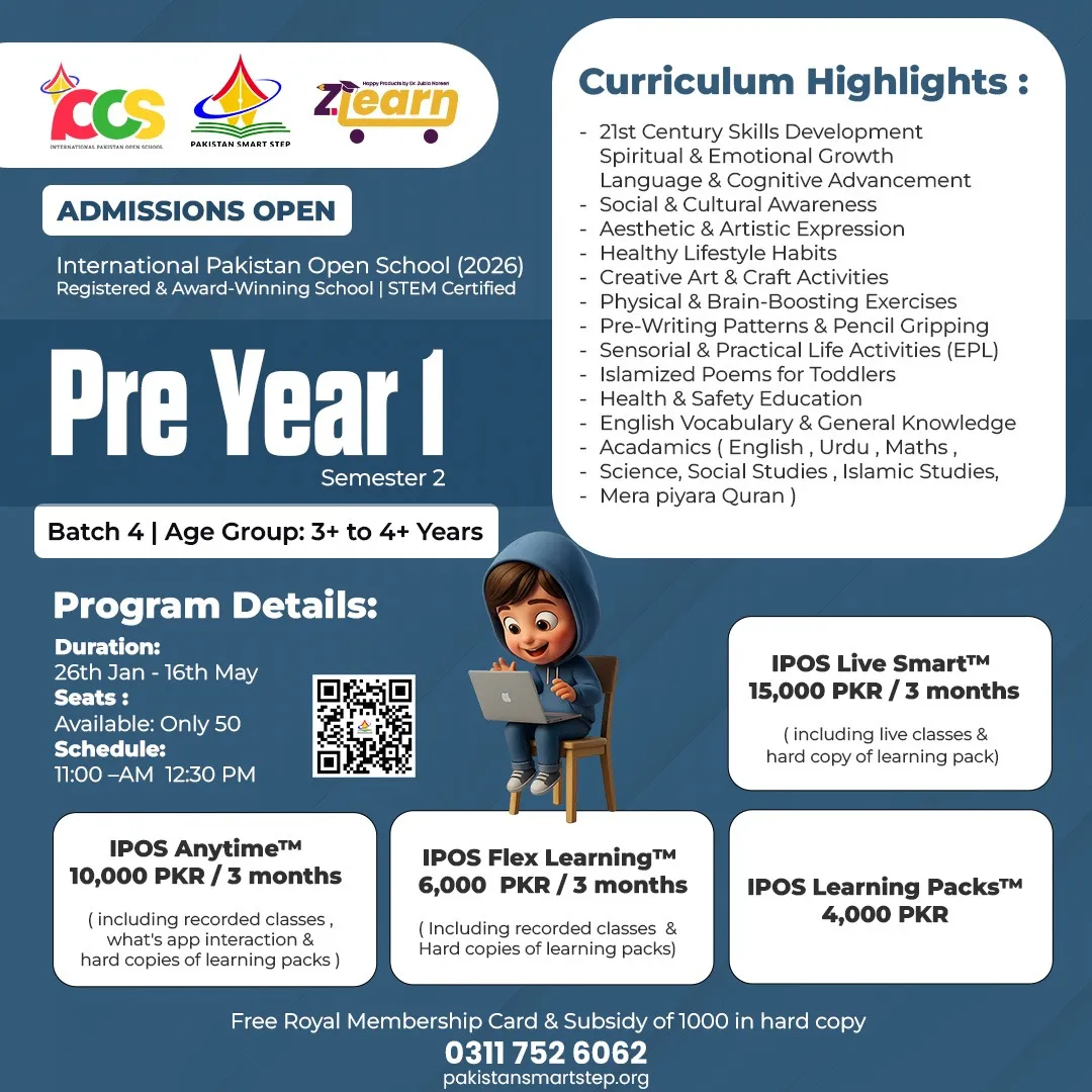 International Pakistan Open School is a registered, award-winning pioneer in the field of online schooling in Pakistan. Founded by Dr. Zubia Noreen (Ph.D. in Education), a distinguished educator with over 20 years of experience in Early Childhood Education and expertise in e-learning, the school provides a revolutionary approach to education.